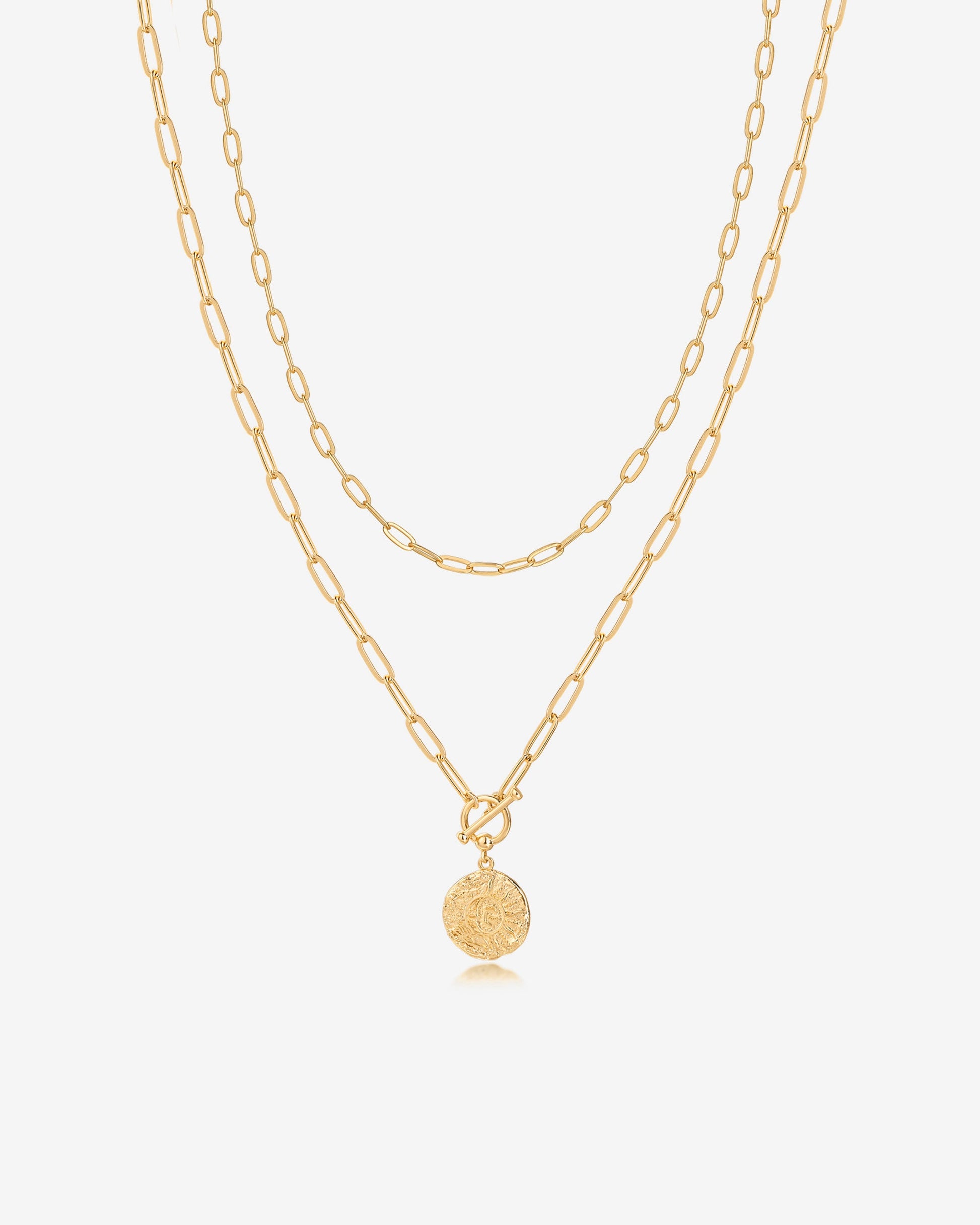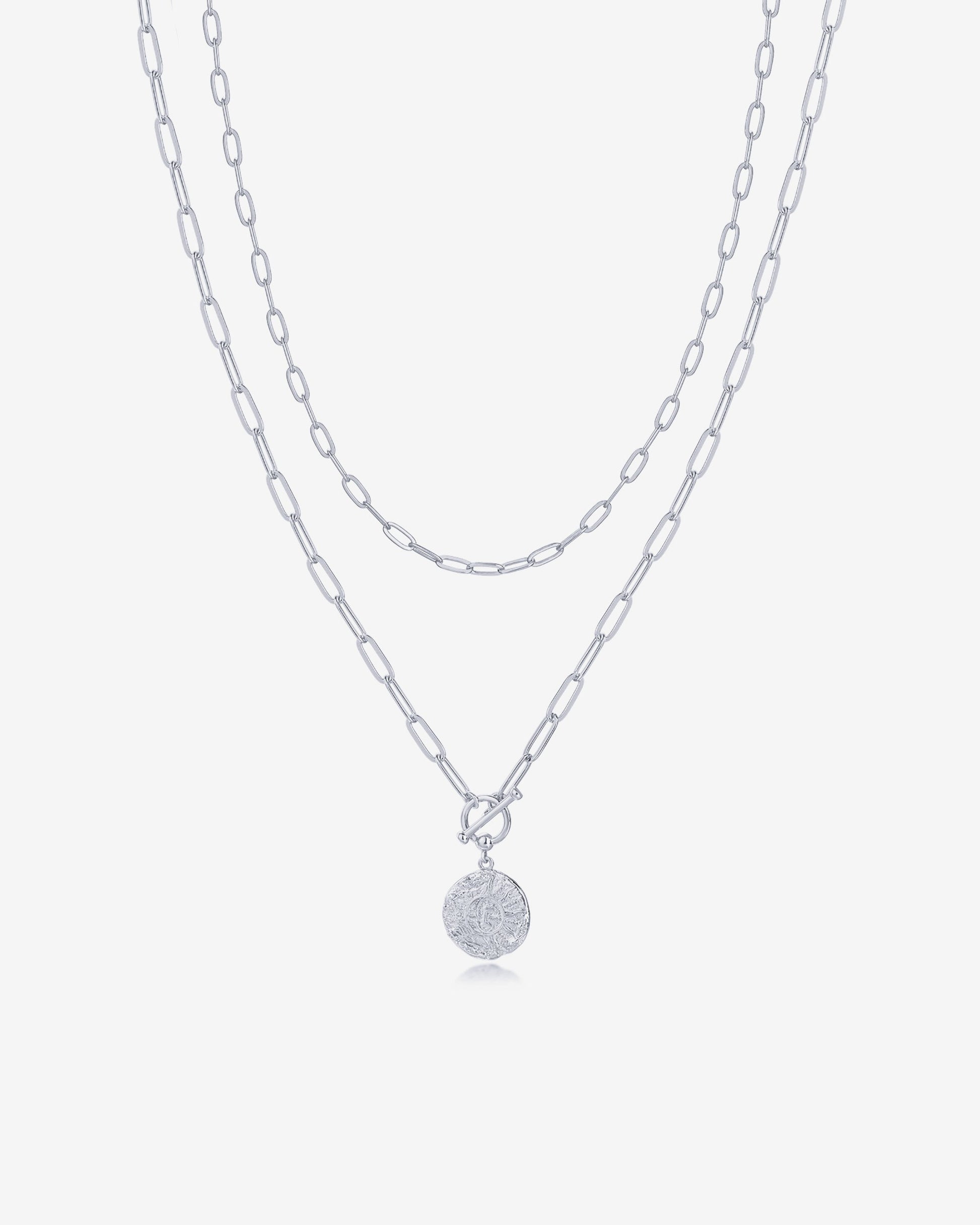 - Measurements: Paperclip Chain: 16"; Coin Necklace: 20".