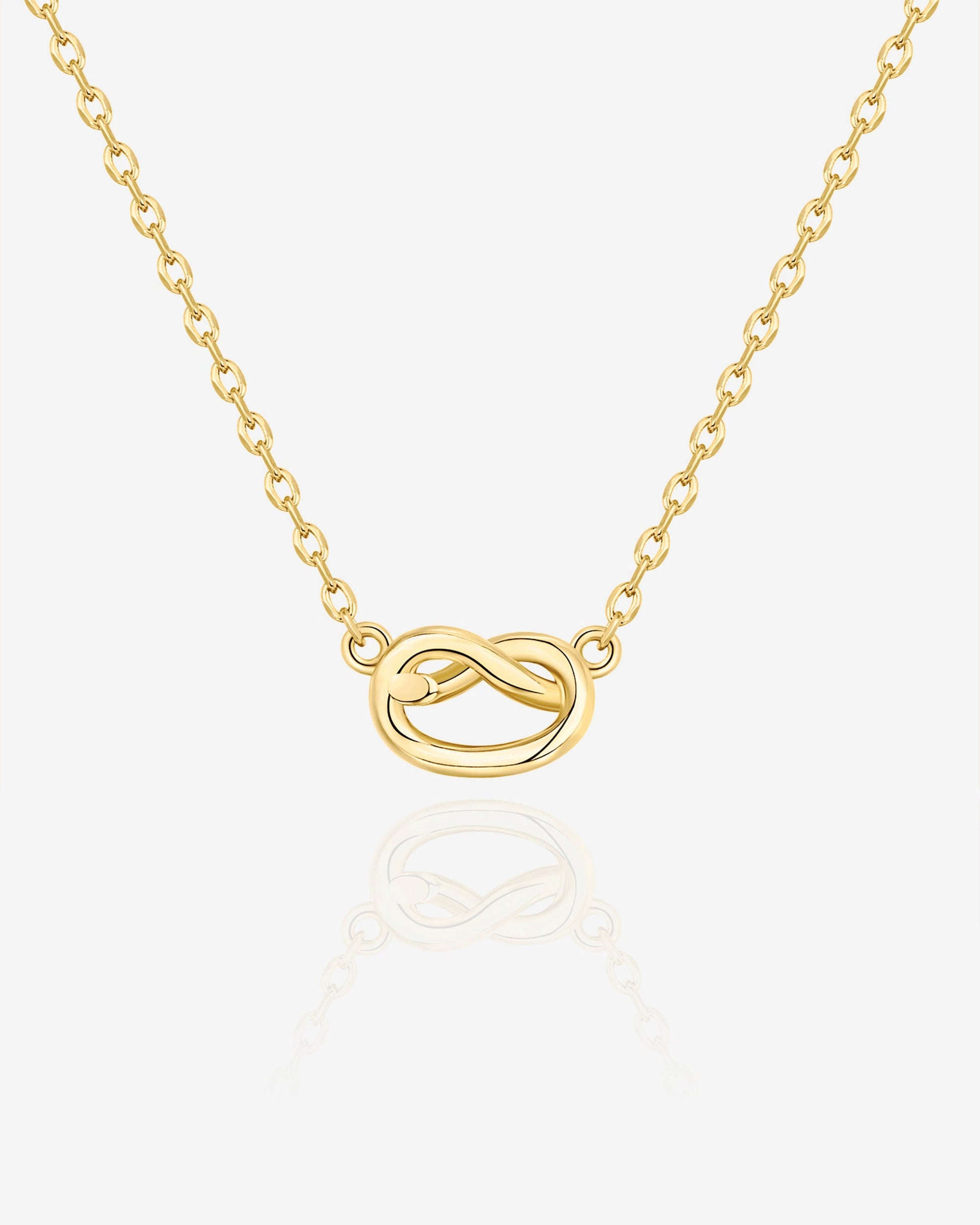 An elevated and modern take on the love knot. A love knot with sleek lines that symbolizes an unbreakable bond. The ultimate heartfelt gift, and a stylish piece you’ll find you can wear with everything.