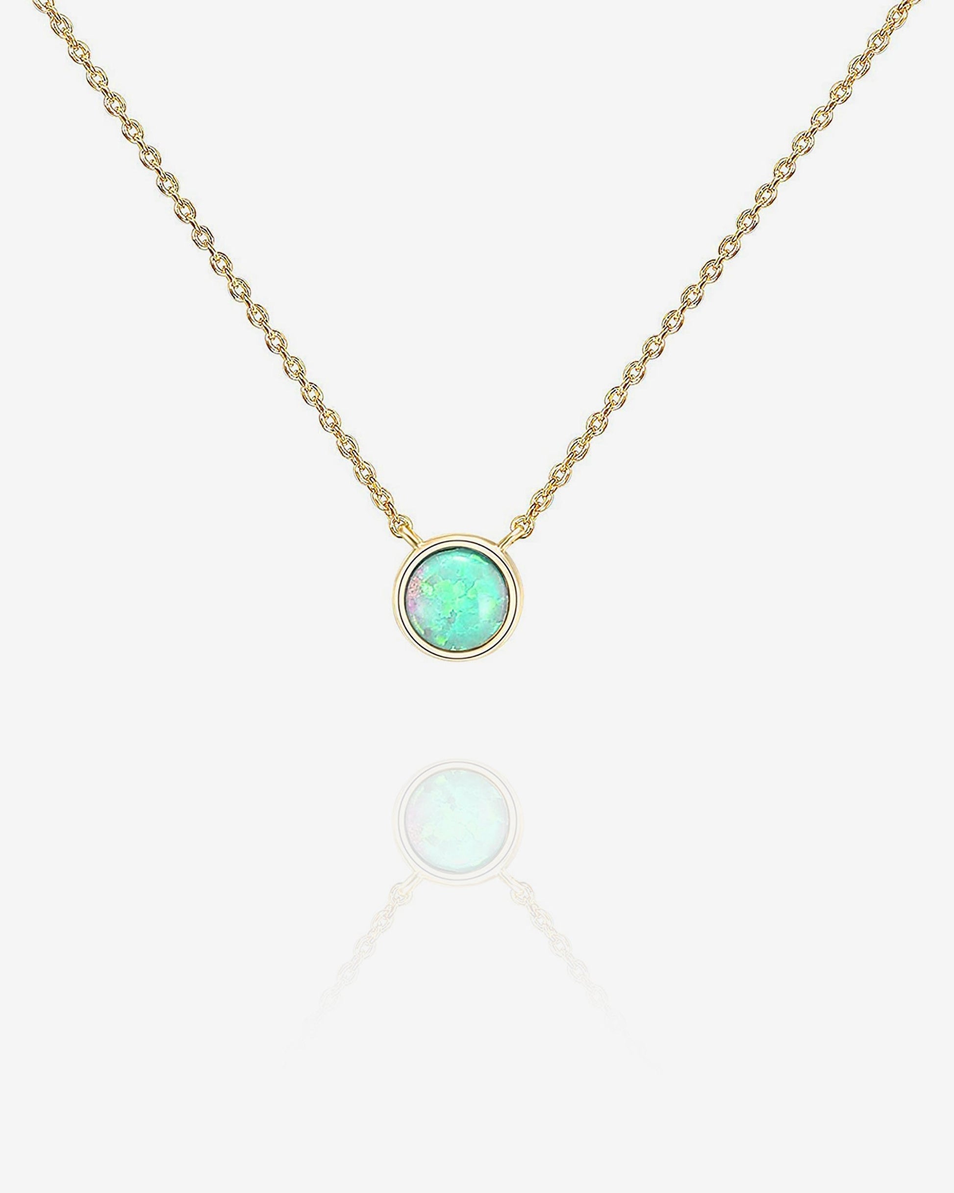 This necklace is the little red dress of your jewelry box. Not as basic as a little black dress but timeless, and the perfect option for almost any occasion. With a gorgeous luminescent opal bezel set with a dainty chain with options at multiple lengths, this piece is beautiful and versatile.