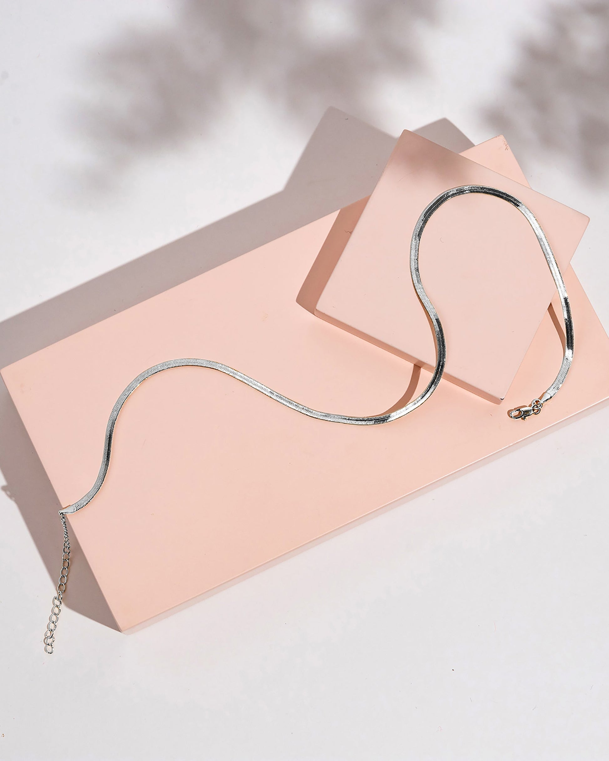 This adjustable Snake chain necklace has a minimalist design and comes in 14k yellow or white gold plating. It’s a great layering item, or perfect by itself!